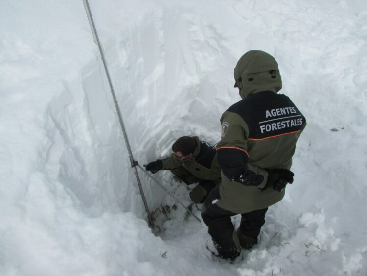 El Cuerpo de Agentes Forestales autonómico realiza cada año medio centenar de sondeos del manto nivoso en distintas zonas de alta montaña.