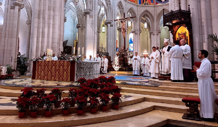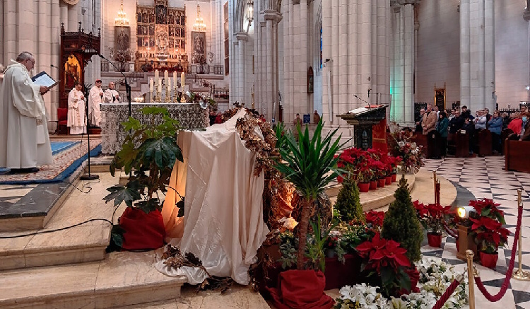 Acompañado por vicarios episcopales, el arzobispo de Madrid ha saludado a los fieles que se han congregado muy numerosamente en el primer templo de Madrid deseándoles un Feliz Año y situando a María como la que abre los caminos «en un mundo complicado y complejo que tenemos en estos días».