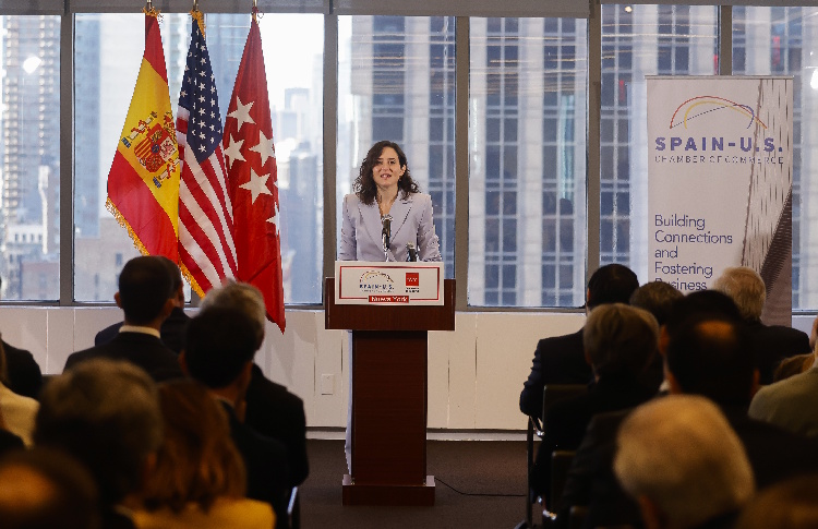 Díaz Ayuso anuncia en Nueva York un homenaje al pueblo norteamericano en julio en Madrid por el aniversario de los 250 años de la independencia de EEUU.