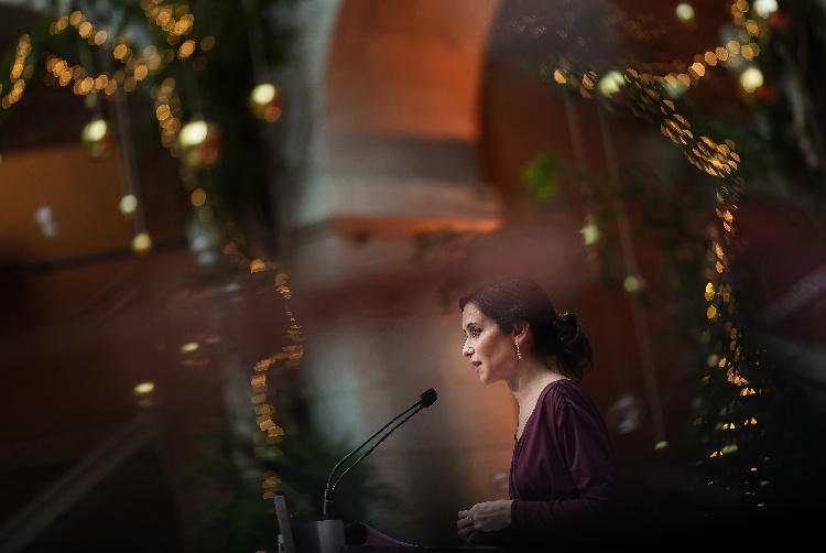 Declaraciones de la presidenta de la Comunidad de Madrid, Isabel Díaz Ayuso, hoy, en el acto de celebración del 47º aniversario de la Constitución Española en la Real Casa de Correos, sede del Ejecutivo autonómico.