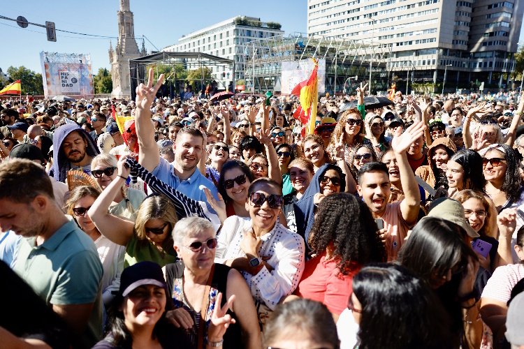 Madrid, 5 de octubre 2025.- La presidenta de la Comunidad de Madrid, Isabel Díaz Ayuso, se ha sumado hoy a los miles de madrileños que han llenado la Plaza de Colón para disfrutar del concierto gratuito de la cantante y compositora de origen cubano Gloria Estefan. Este recital, convertido en uno de los actos centrales de la programación de Hispanidad 2025, se enmarca en la quinta edición de este evento cultural que se celebra bajo el lema Todos los acentos del español caben en Madrid.