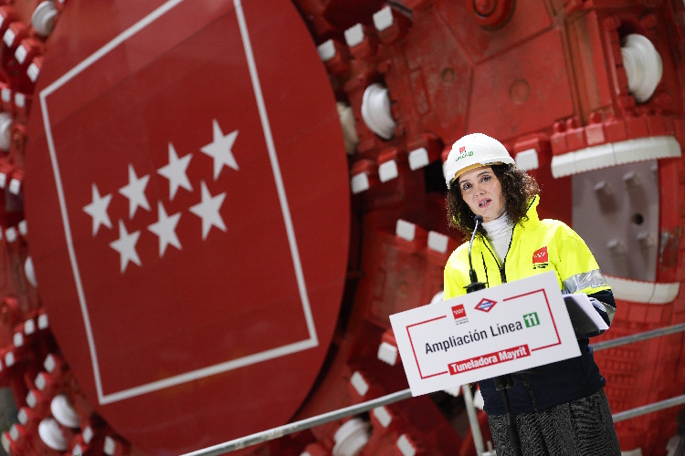 Díaz Ayuso en el montaje de la tuneladora Mayrit para ampliar la Línea 11 de Metro: “Es un referente mundial en excavación subterránea”