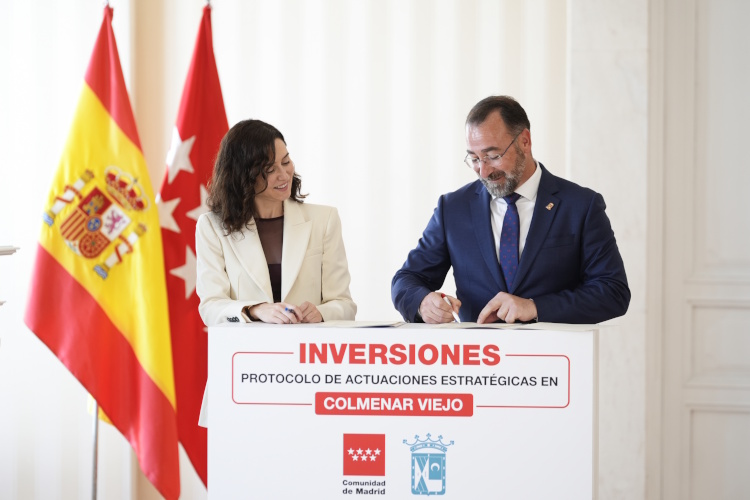 La presidenta de la Comunidad de Madrid, Isabel Díaz Ayuso, ha firmado hoy en la Real Casa de Correos un protocolo general de actuaciones estratégicas con el alcalde de Colmenar Viejo, Carlos Blázquez, que recoge inversiones de más de 180 millones de euros del Gobierno regional en este municipio para que sus vecinos tengan “las mejores infraestructuras y servicios públicos”, ha señalado.
