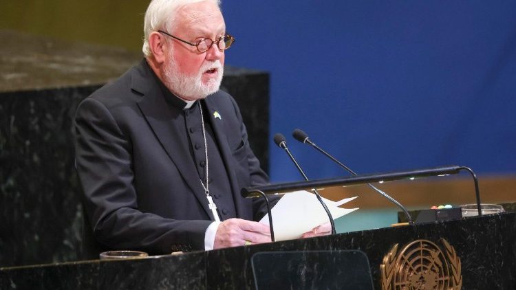 El discurso, pronunciado la noche del 29 de septiembre en la sede de las Naciones Unidas en Nueva York, comienza con la observación de que la «cooperación multilateral» es esencial para abordar los problemas mundiales. Para ello, es necesario reafirmar los valores primordiales de la organización: promover la paz internacional, el desarrollo y los derechos humanos universales, valores que son «aún más importantes en un mundo cada vez más fragmentado». Está marcado por un «aislacionismo» que es la causa de una «inestabilidad previsible», que se traduce en las lacras que afligen hoy en día: «la escalada de las tensiones geopolíticas, la crisis climática en curso, el aumento de las desigualdades y la pobreza creciente». Cuestiones que dan testimonio de un contexto internacional cambiado, con nuevas «amenazas» que «ningún país puede afrontar solo». En este contexto, la Santa Sede actúa como «voz de los sin voz», promoviendo «un mundo en el que la paz prevalezca sobre los conflictos, la justicia triunfe sobre las desigualdades, el Estado de derecho sustituya al poder y la verdad ilumine el camino hacia el auténtico bienestar humano».