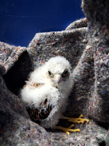 Pollo de cernícalo primilla rescatado tras caer de su nido. (Foto: GREFA)