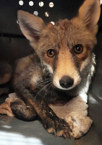 Zorro rescatado tras quedar atrapado en una valla. (Foto: GREFA)