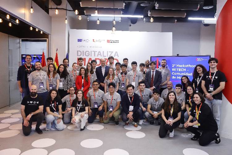 Madrid, 13 de febrero 2026.- La Comunidad de Madrid ha puesto en marcha hoy la segunda edición del hackathon RETECH (Redes Territoriales de Especialización Tecnológica), una competición que se celebra entre hoy y mañana en el Centro de Innovación Digitaliza Madrid y que reúne a más de medio centenar de jóvenes con talento digital para dar respuesta a retos reales en los ámbitos de la salud, el medio ambiente y el sector aeroespacial. El consejero de Digitalización, Miguel López-Valverde, ha inaugurado la primera jornada de este evento, en la que ha destacado “que “esta iniciativa del Ejecutivo autonómico busca acelerar startups, escalar proyectos tecnológicos y promover la innovación abierta”. “Forma parte de un ecosistema que se ha consolidado como el que más crece en valor de toda Europa desde 2017, solo por detrás de Londres y París”, ha añadido.