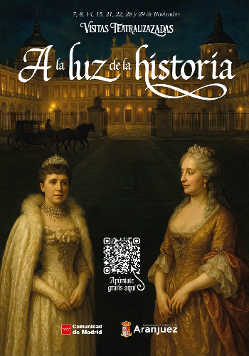 Madrid, 1 de noviembre 2025.- La Comunidad de Madrid invita a descubrir el patrimonio cultural e histórico de Aranjuez con visitas turísticas guiadas y teatralizadas. A la luz de la historia, nombre que recibe esta iniciativa, se celebrará el 7, 8, 14, 15, 21, 22, 28 y 29 de noviembre, de 18:30 a 21:30 horas.