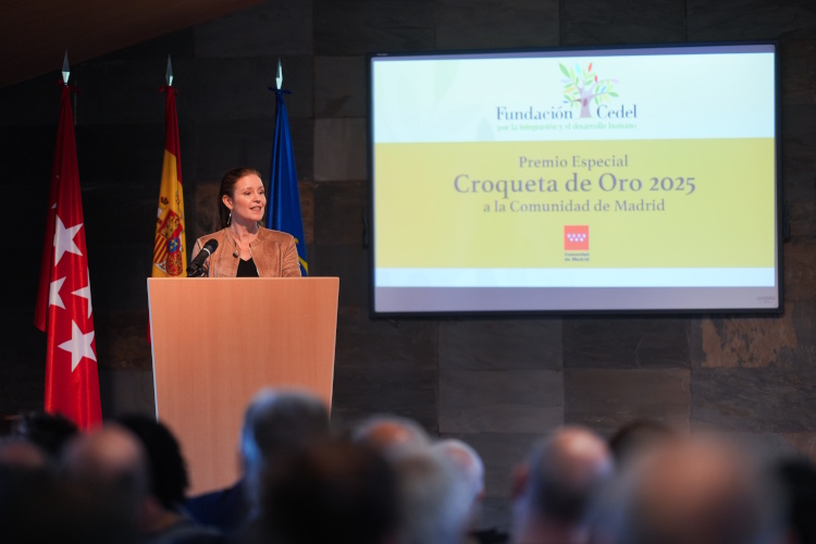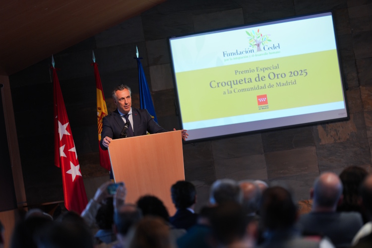 Las Rozas (Madrid), 15 de enero 2026.- La Comunidad de Madrid ha sido galardonada con el Premio Especial Croqueta de Oro de la Fundación Cedel por su compromiso con las personas con discapacidad en su inclusión social y laboral. El consejero de Medio Ambiente, Agricultura e Interior, Carlos Novillo, y la de Familia, Juventud y Asuntos Sociales, Ana Dávila, han recogido este reconocimiento, en un acto celebrado en Las Rozas de Madrid.