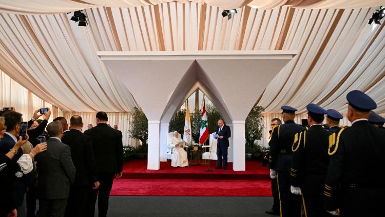 El Papa es recibido por el presidente del Líbano en el aeropuerto internacional de Beirut. (Foto: ANSA)