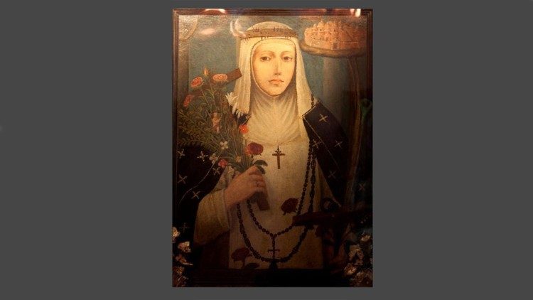 Hablando con el director, mostró una foto de la santa, una réplica que es la que la madre de Santa Rosa llevó al convento cuando hizo los votos, como religiosa de clausura y lleva algunos objetos que pertenecieron a la santa entre ellos este cuadro. Esta réplica la presentó el director Cam ante el Papa León XIV este miércoles, al concluir la audiencia general, para pedirle que la bendijera.