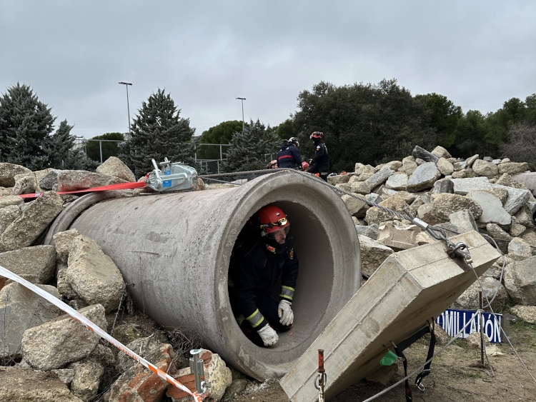 El simulacro ha contado con la participación de alrededor de 180 componentes de esta unidad de élite autonómica, formada por efectivos del Cuerpo de Bomberos regional y sanitarios del Servicio de Urgencia Médica SUMMA112. Además, ha integrado las unidades caninas de la Escuela Española de Salvamento y Detección con Perros (ESDP) y de Protección Civil de Las Rozas de Madrid.